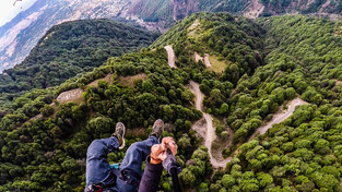 We knew that our hike was almost over once we looked up to the sky and saw the paragliders. After reaching the top, I was so happy that I decided to jump on the edge of the road with our guide.